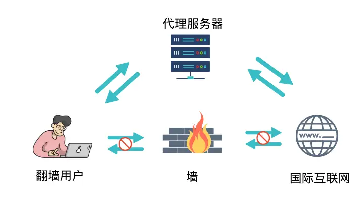 在使用代理时,我们通常会把购买得到的clash订阅连接导入clash客户端,客户端会通过订阅链接获取节点。通过这些节点中转,我们便可以访问被GFW阻止的服务。原理示意图如下:(图源网络)
